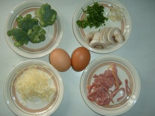 Meanwhile, finely chop the parsley and the spring onions. Slice the mushroom into thin slices and grate the cheese.