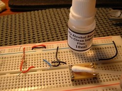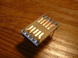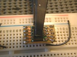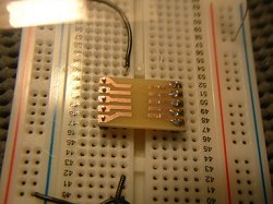 Although it would be possible (just) to solder it to the underside of a single-sided PCB, I decided it would be much easier to make a more conventional breakout board complete with 0.1" headers. This simplified the development work on a breadboard and made it easy to solder to the final clock-radio PCB later.