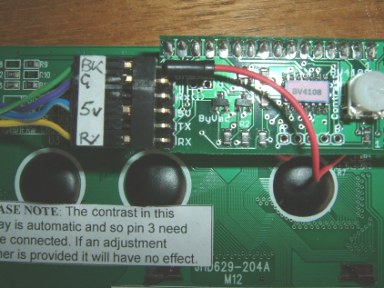 Due to the number of inputs and outputs required by the ATmega328, it wasn't possible to use a simpler parallel-connected LCD. I like to use a serial controller board from ByVac. Although it's designed to be mounted directly onto the 16-pin header on the LCD itself, I prefer to use a header and socket arrangement. In any event, in this case, the display and the serial controller need to be ordered separately in order to be able to gain access to the pin on the display board which controls the LED backlight - note the separate flying lead connected to the display pin 15. Pins 1 to 14 and pin 16 connect to the serial controller board as normal. A light-dependent resistor connected to Arduino analogue pin A3 measures the ambient lighting and controls the Arduino PWM output on digital pin D3 which is connected to the LCD's LED backlight to control its brightness. ![]()