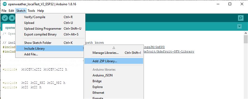 Additional Libraries for the E-Paper Weather Monitor SketchThe sketch also needs a few additional libraries as follows.