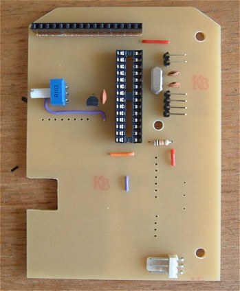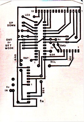 The Ciruit![]() As space is limited in the case I had available, there wasn't room for an LCD piggy-backed serial driver so I opted to use a parallel interface 16 x 2 display from Oomlaut. Some LCDs have timing "issues" with Arduino Sketches so I decided to power the LCD from an Arduino output pin. By this means, the ATMeag328 is fully up and running (including the initialization of the I2C interface) before the LCD is powered on. As all the Digital pins were already in use, I used Analoge pin A2 as a digital output pin. I used Digital output D8 in order to turn the LCD backlight on and off. D7 and D9 to D13 perform the usual LCD parallel interface functions. Note that these pin assignments are different from the Arduino LCD "Hello World" example. I swapped the pins around to simplify the PCB layout. D6, D5, D4 and D3 are configured as inputs for the buttons: UP, DOWN, SET and MODE. The actions of the buttons are determined purely in software. I have them as follows: