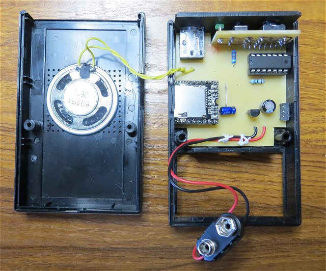 The circuit is self-explanatory except, perhaps, for the connections to the 8 ohm loudspeaker. The MP3 module has two