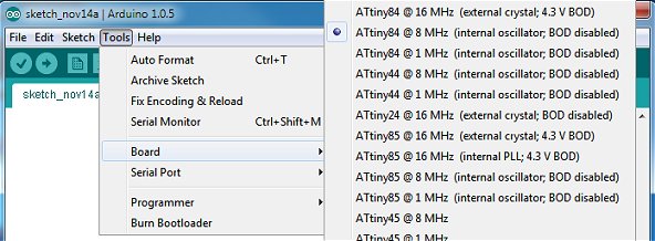 Programming the ATtiny84The ATtiny84 is programmed using the Arduino environment with either an Arduino Uno or a dedicated programmer.It's necessary to define the ATtiny84 core so the Arduino IDE knows about its pins. Be aware there are a couple of different libraries for the ATtiny84 that treat the ATting84's internal registers differently. The library I used is arduino-tiny. The 'README' included in the downloaded zip package contains full instructions for installing it into the Arduino IDE. There are dozens of websites detailing how to use the Arduino Uno as a programmer - particularly for the ATtiny84 - so I won't repeat them in detail here. In brief, the steps are: