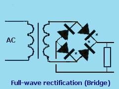 RectificationThere are basically three different circuit arrangements to convert the AC from the transformer secondary winding to DC. The scheme we choose depends on the type of secondary winding.