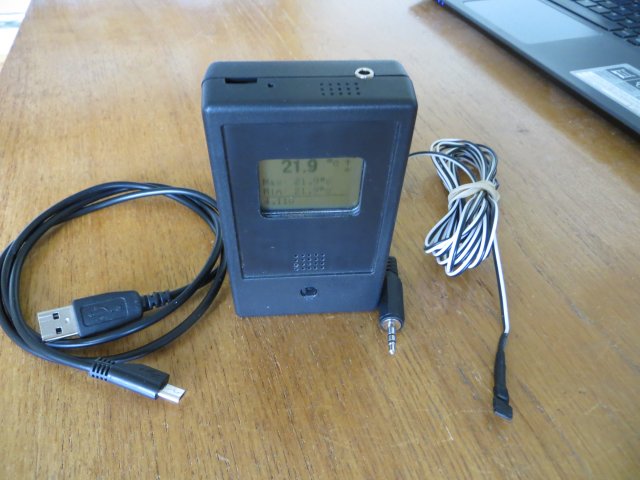 SummaryThe monitor is powered with a 1000mAh rechargeable lithium battery and can be left running for several weeks before it needs recharging via its own internal USB/5v lithium charger.It incorporates an internal digital temperature sensor but an external sensor can be plugged into a 3.5mm jack socket to provide remote temperature measuring. Two alarm setpoints can be set with either an audible or a visual alarm if the measured temperature goes out of the set limits. The interval between temperature measurements can be adjusted from once every couple of seconds to once every four minutes. The longer the delay, the longer the battery will last between charges. Temperature can be measured & displayed in Fahrenheit or Celcius; changing between scales will automatically re-calculate the two setpoint temperatures.