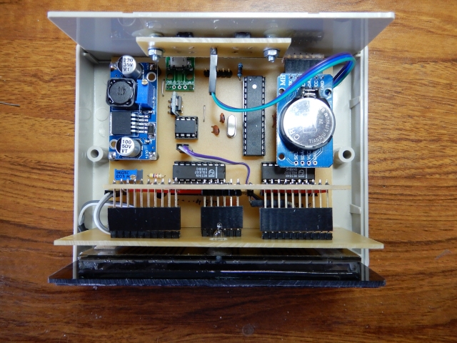 The enclosure's plastic front panel is replaced with black transparent perspex (type 923). Unfortunately, 3mm seems to be the thinnest available so I used a Dremel