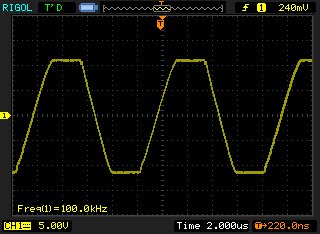 The TL072CPThe first half of the TL072CP OpAmp (IC3a) is used as a unity-gain buffer . IC3b provides about 5.7x gain [ (R12/R13) +1 ] and a wide DC Offset adjustment.Choice of the TL072CP was quite critical. Initially, I used an LM6172 which has a better frequency response but I found I could get a higher un-distorted output frequency using the TL072CP. As the chip is socketed on the PCB and OpAmps tend to be pin-compatible, it's easy to try different ICs.