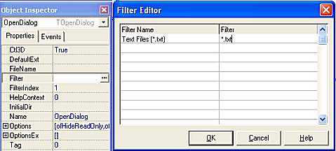 In the Object Inspector, set the DefaultExt as .txt and use the Filter Editor as with the Open Dialog. And there we have it! A very basic editor. It's barely a usable program but, hopefully, it has given you a start in the years ahead of you enjoying programming in Delphi! Enjoy and have fun!
