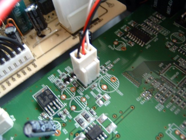 Unplug the fan connector from the Humax main board and plug it into the top connector on our