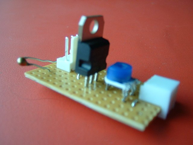 The potentiometr (VR1) is adjusted so that the fan runs slowly when the box is cool. Don't forget that later