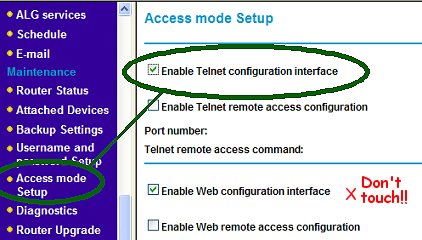 Also, ensure that Telnet access to the router is enabled in the web-based configuration: