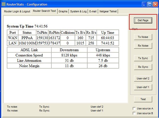 You may need to press the Get Page button a couple of times but, with luck, the router's stats page should be displayed in the window.