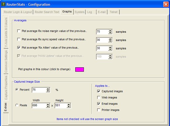 Normally, the size of the captured images is the same as the screen images but this can be changed here either as a percentage of the screen graph or by specifying an absolute width and height.