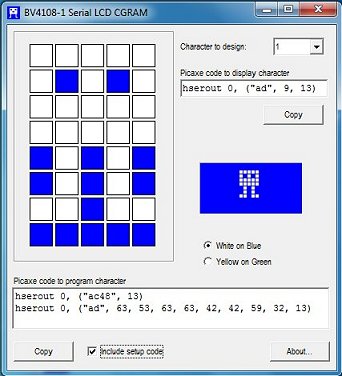 This "wizard" (to download) will assist in designing custom graphics for the ByVac 20x4 IASI-2 Serial LCD module with a PICAXE Microcontroller