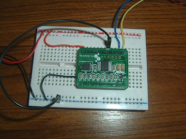 ![]() The device's address is $60 (% 0110 0000). Four versions of the chip are available with different I2C addresses. $60, $64, $68 and $6C (% 0110 xx00). Writing a '1' to the module's register (address 0) triggers the device into sending 5 bytes of data from consecutive register addresses: The register contents, x-axis MSB, x-axis LSB, y-axis MSB and y-axis LSB. As we're not interested in the register contents [*], the I2C Read operation can begin at address 1. According to Sure datasheet, the module has a 12-bit resolution, the top 4 bits of each MSB being zeros. Unless I'm reading the module incorrectly, it didn't work like that. The MSB of each axis was either 00000111 or 00001000 ie either 7 or 8. The LSB for each axis produced an output between 0 and 255 - twice for each revolution. The MSB was 7 for half of the rotation and 8 for the other 180 degrees. Therefore, it wasn't possible to get a simple 16-bit value from the Picaxe word variables (b1:b0 and b3:b2). The relationship between the x and y axes is 90 degrees (obviously!) but some decent maths between the two axes may yield better resolution than the apparent 9-bit. [*] It may be that the register contents are more relevant that it apears. More work on this module is required, but disappointing so far - not helped by comparatively poor documentation!