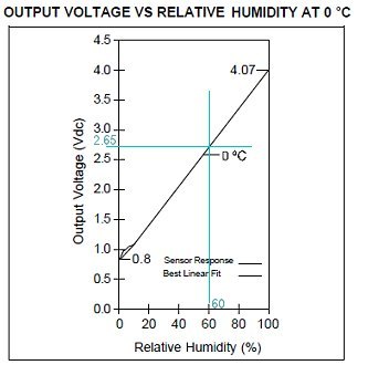 Humidity Sensor MathsThe following notes are taken from the Revolution Education Datasheet for the Honeywell HIH-3610. Picaxe maths definitely isn't one of my strong points so putting the information here is as much for my own convenience - and to help me understand - as anything else.