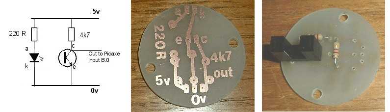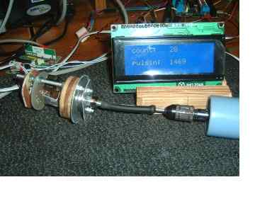 provides two pulses per revolution. I was reluctant to add more 'blades' to the aluminium flag for the opto-sensor in case the