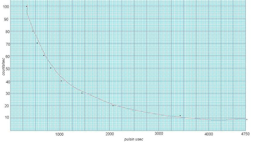 For some reason, the pulse-length seemed to be reducing exponentially as the speed increased. As a result, counting the pulses seemed