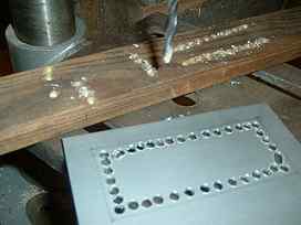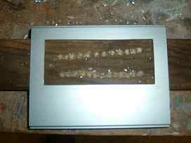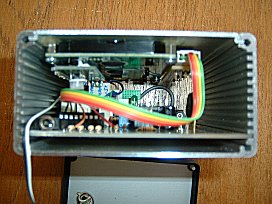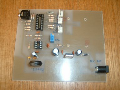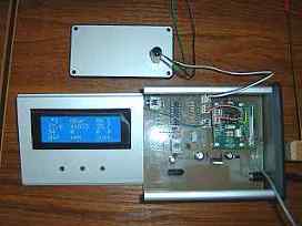 ![]() Two photos showing the PCB almost ready for the etching solution and completed with components except for the wireless receiver board and the two ICs. I used PCB header plugs to connect the main PCB to the LCD, the wireless board, the front-panel push buttons and the socket for the computer connection. The Picaxe programming socket is at the top left of the PCB; the 12v DC input socket is at the bottom right. I deliberately made the programming socket a little "inboard" from the edge of the PCB to prevent it touching the case's metal endplate. It meant making a small "cutout" in the edge of the PCB (similar to the Picaxe project boards) to allow the plug to be inserted fully. The aluminium case is from Rapid Electronics. The cut-out for the LCD display is made by chain-drilling the case and filing the hole until the LCD is an exact fit. An M3 x 6mm hex pillar is Araldited to each inside corner as mounting posts for the LCD, to avoid unsightly screw heads showing on the outside.