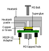 The MCP73837I decided to use the MCP73837 from Microchip. It has a programmable maximum charge current (up to 1A) and has a dual power supply capability - USB or a DC Power Adaptor.Unfortunately, the MCP73837 comes in a tiny MSOP-10 package - too small for me to work with these days. I use a company called Tirna Electronics who supply SMD to DIL breakout boards (adapters) and they're able to source the IC from either RS Compoents or Farnell and solder it to the breakout board.