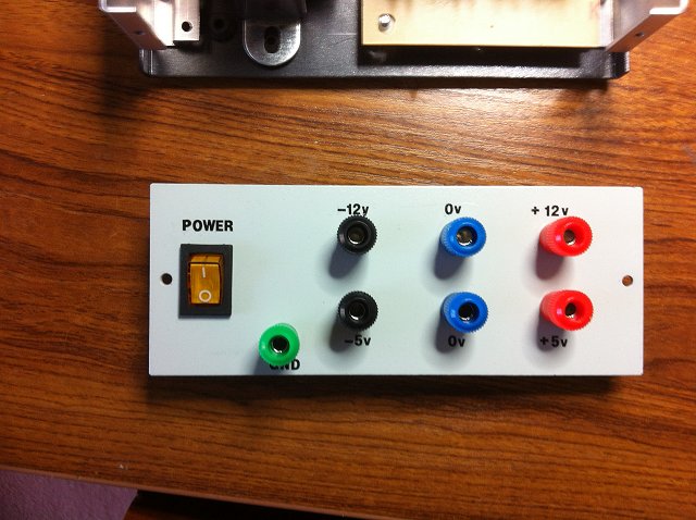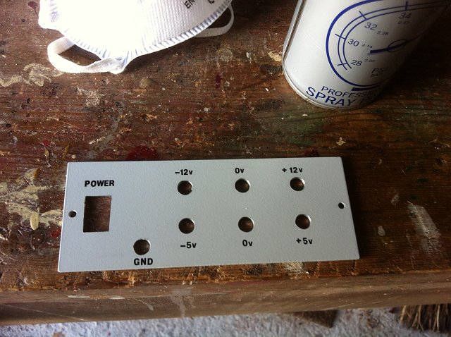 I used Letraset for the panel labels and sprayed with half a dozen coats of clear cellulose laquer to help stop the letters rubbing off. The rectangular hole for the power switch was made by chain-drilling and filing.