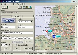 Version 1.4 has the facility to transmit APRS-formatted weather data which can be obtained from an external file or entered 'manually' using the weather-data calculator built into APRS-Beacon.