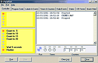 ParaPort is a Windows-based program to allow hardware access to the parallel ports, LPT1 and LPT2. It can read 5 inputs (switches etc) connected to the parallel port and send 8 outputs to set individual data lines on the port either high or low.