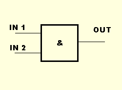 The top picture shows, in symbolic form, one of the most basic forms of electronic switch. In this picture, a voltage has to be applied to both 'IN 1' and 'IN 2' before a voltage appears at the 'OUT' side. Note the & symbol to signify an "and gate ".