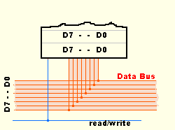 If these switches latch the voltages applied to their inputs, then, by signalling to the switches whether to read the voltages being applied to them or to output the voltages which it already has latched, we could combine the 'INPUTS' and the 'OUTPUTS' and form a single Data Bus. Depending on the read/write signal, we could either read volatges from the Data Bus as inputs or place voltages onto the Data Bus as outputs.