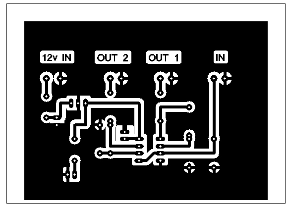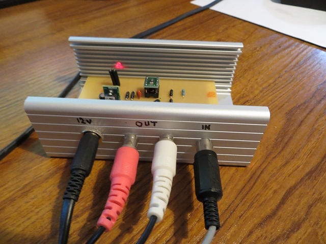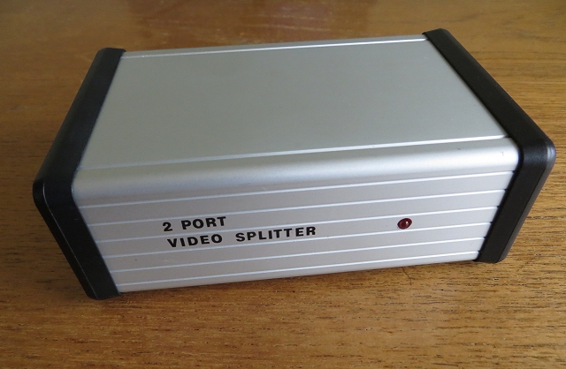 Ideally, I wanted a camera to feed both the CCTV recorder and the original PC video capture card. It's not usually possible to simply connect the video signal to both destinations because it nearly always results in one or both pictures being too dark or subject to interference patterns or bars. The solution is to use an active video splitter using Op Amps to connect the single video source to more than one destination. This simple circuit only provides the two outputs that I needed (one to the CCTV recorder and one to the original PC capture device) but it could easily be extended to provide more, for example, to provide video for monitors in several rooms. Note that this project does not handle audio (if present). The completed project has been tested with both Analogue HD and conventional Composite Video (CVBS) cameras and produces good results with both. The Circuit![]() The main component is the LT2606 Dual, Single supply 100MHz Video Op Amp IC from Linear Technology. The circuit is taken straight from the LT2606 datasheet with the addition of the 3.3v power supply. To give as wide a DC power input range as possible, I've used a 3.3v 1A DC-DC "buck" converter rather than the usual LM-series regulator. The one I used is pin-compatible with a standard LM7833 which could probably be used instead as the current taken by the circuit is very small - around 10mA. As the cost of the specified OKI-78SR-3.3/1.5-W36-C converter is relatively low and the circuit will be running continuously 24/7, I thought it worthwhile keeping the power dissipation in the regulator to the absolute minimum. As the converter does not have any inherent DC input reverse-polarity protection, I included the 1N4001 diode in series with the input. The converter is rated at 7 to 36 volts DC input but, as I used a 25v DC capacitor on the input, the voltage should be limited to no more than about 20v DC. As I use the same power supply for the camera, I use a 12v DC input. The odd value resistors (499 Ohms) are, perhaps surprisingly, an easily obtained, stock value. The two 75 Ohm resistors at the right hand end of the coax (Shown on the datasheet schematic but, not on my schematic) are assumed to be the load/terminators usually provided by each destination input and are, therefore, not present in this design. The series 75 ohm resistor and the 75 ohm load resistor form a 2:1 potential divider. As the gain of the OpAmp is 2, [ (499 ÷ 499) +1 ], the overall gain of the complete circuit is 1. (Vout = Vin). Construction